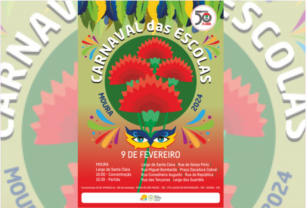 O “Cravo”, símbolo da revolução de Abril, é o tema escolhido para o Carnaval das Escolas este ano em Moura, com o desfile a realizar-se no dia 09 de fevereiro.A data está inserida nas actividades dos 50 anos do 25 de Abril que vão ocorrer durante todo o ano no concelho de Moura. Rádio Planície …