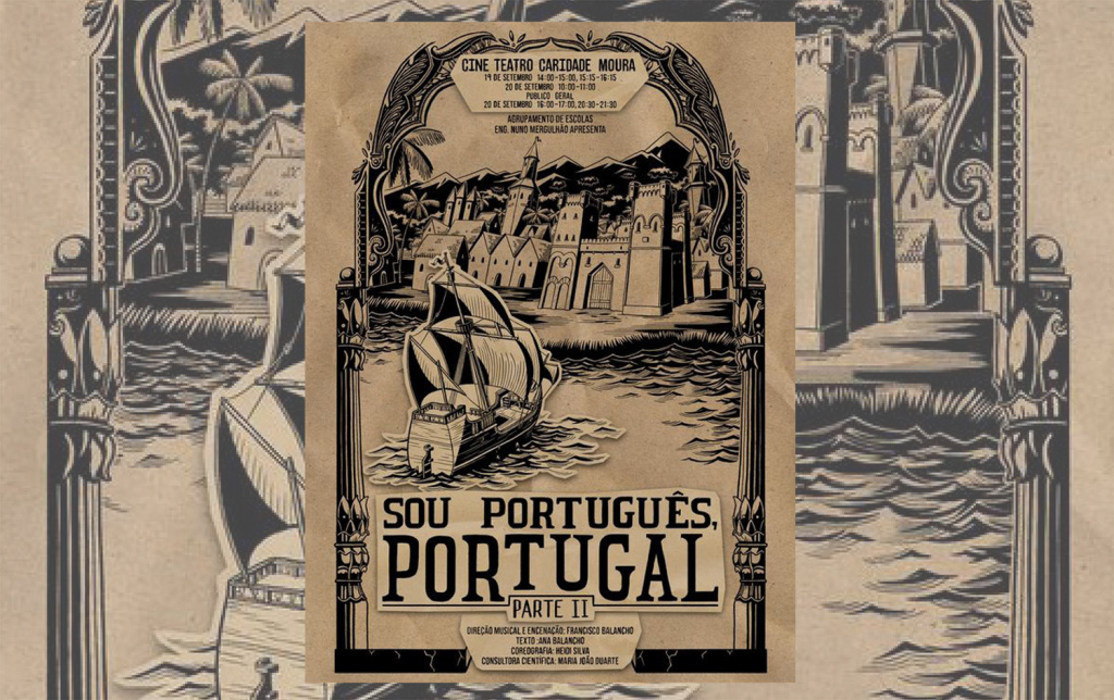 O Cineteatro Caridade em Moura, vai ser o palco do musical “Sou Português, Portugal II” nos dias 19 e 20 de setembro, uma peça da autoria do Agrupamento de Escolas Eng.º. Nuno Mergulhão. A sinopse conta que durante a apresentação da expressão artística, “deslumbramo-nos com a opulência da corte portuguesa do séc. XVIII e a bravura demonstrada pelo povo aquando das invasões francesas; revemos a crise política que se desencadeou com a morte de D. João VI e a guerra civil que se seguiu; recordamos os primeiros ideais republicanos.