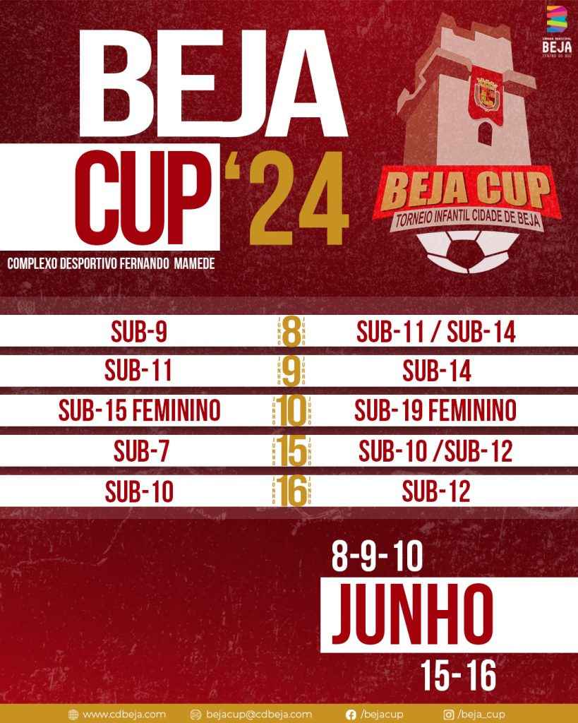 A edição de 2024 do BEJA Cup, que se realizará nos dias 08,09, 10, 15 e 16 de junho de 2024, irá contar com a participação de mais de 70 equipas de futebol masculino e feminino, oriundas de Portugal continental e ilhas, sendo um dos dias do torneio dedicado por inteiro ao futebol feminino.