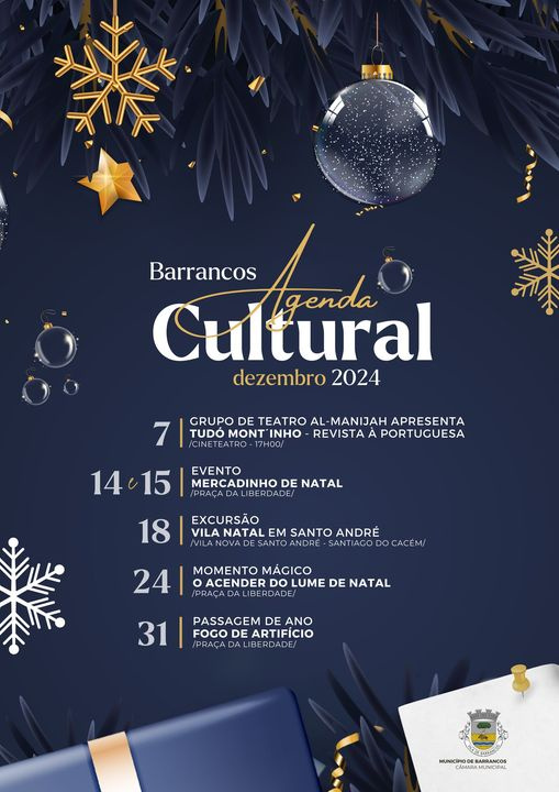 O Município de Barrancos já programou as principais actividades para este mês de dezembro. Destaca este sábado, 7, a actuação do grupo de teatro mourense Al-Manijah, com a da revista à portuguesa “Tudó Mont’inho”, às 17h00, no Cineteatro. Dias 14 e 15, o Mercadinho de Natal na Praça da Liberdade, seguido no dia 18 de uma excursão à Vila Natal em Santo André, Santiago do Cacém. Para a noite de 24, o momento mágico com o acender do lume de Natal na Praça da Liberdade e o fogo de artifício na passagem de ano, 31, no mesmo local.