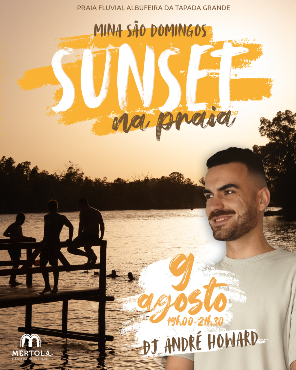A Praia Fluvial da Albufeira da Tapada Grande, na Mina de S. Domingos, vai ser o palco de mais um “Sunset na Praia” das 19h00 às 21h30, com o DJ André Howard.